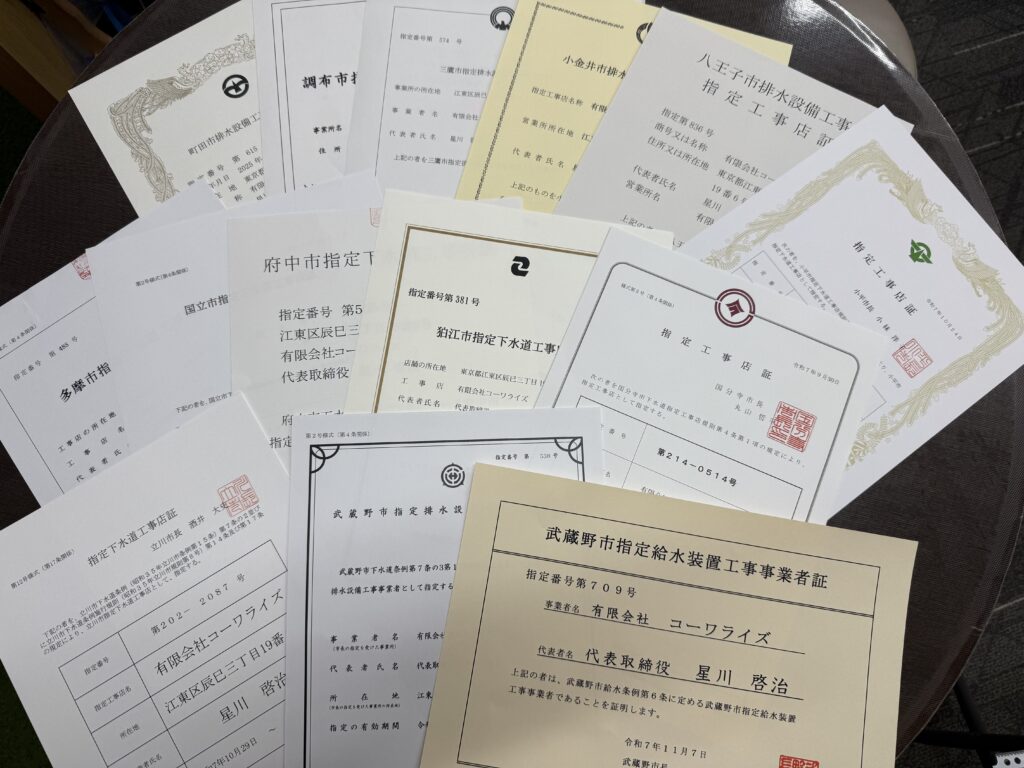 約2~3ヶ月ほどをかけて準備をし、多摩地域の下水道工事指定店を取得しました(^o^)/